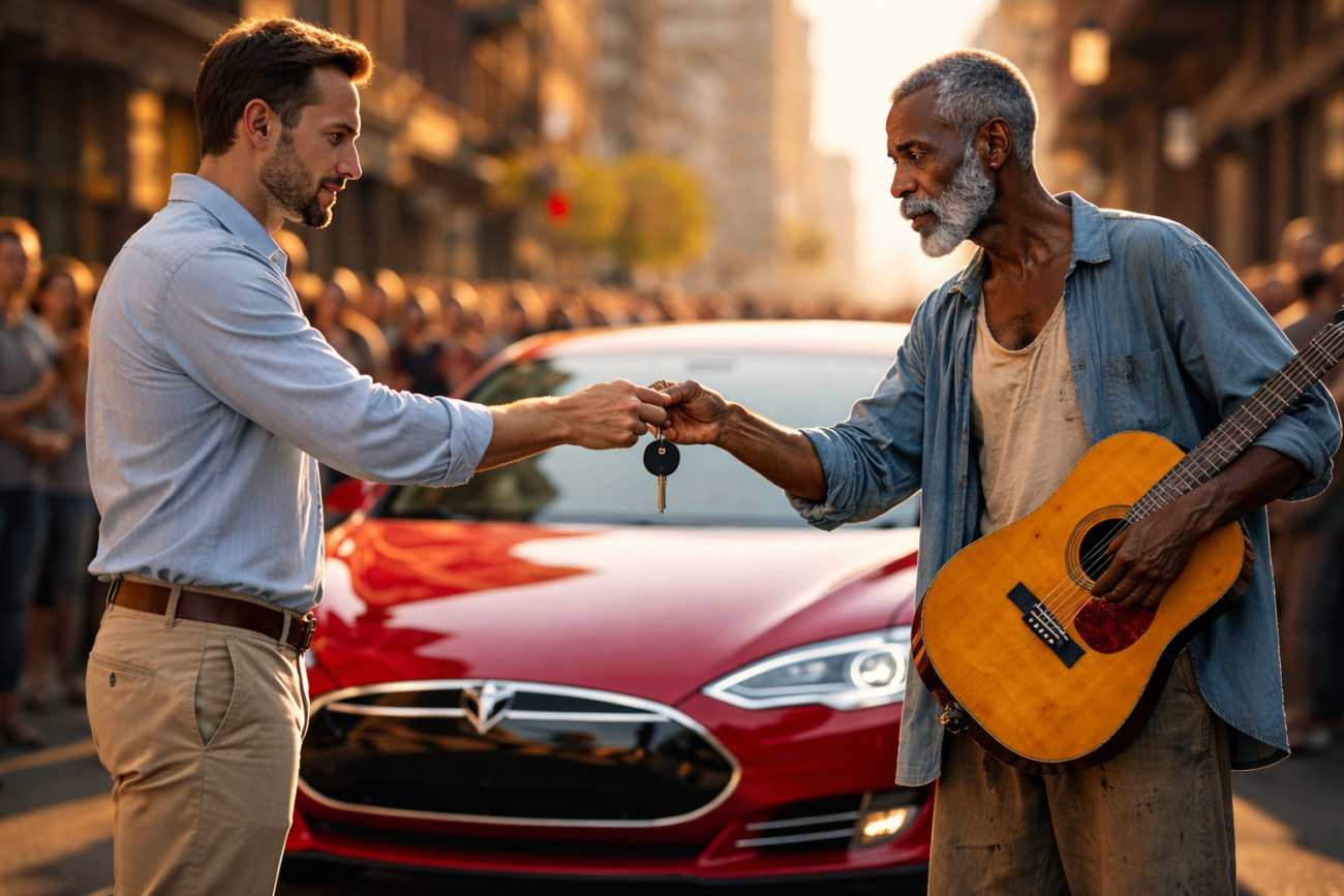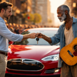 Tyler Blackston shouted the words with mocking laughter, pointing toward the red Tesla Model S parked…