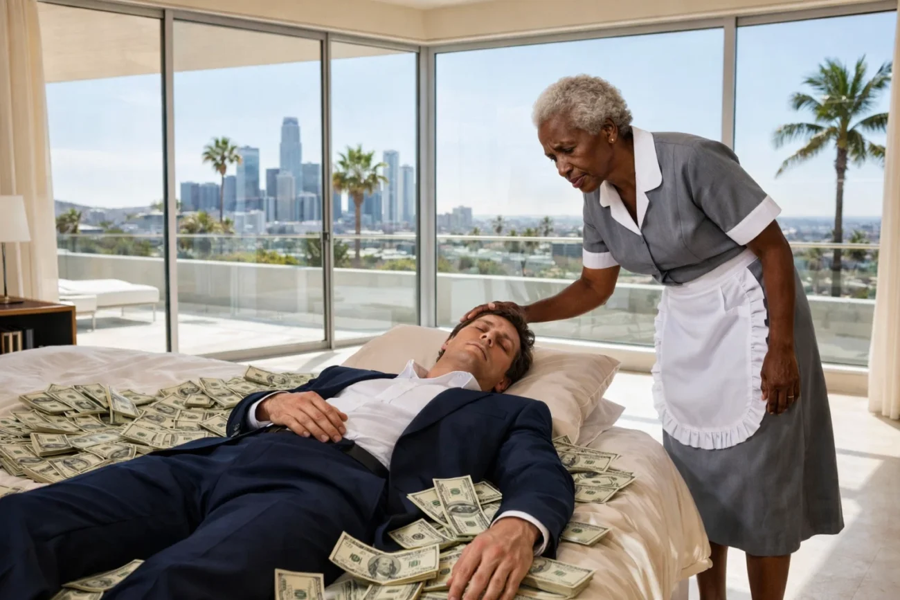 A wealthy CEO pretended to sleep on a pile of money to test his poor Black maid — then he was stunned by what she did…