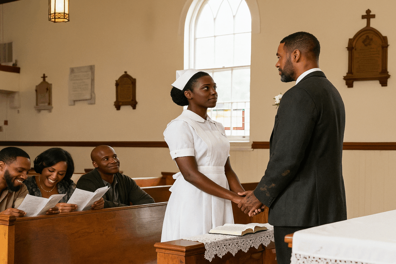 Grace stood framed in the doorway, sunlight spilling around her shoulders. For a heartbeat, the uniform and inexpensive shoes fell away in the mind’s eye. She was simply a woman at the threshold of a new life—dark skin luminous, eyes alight, posture firm.