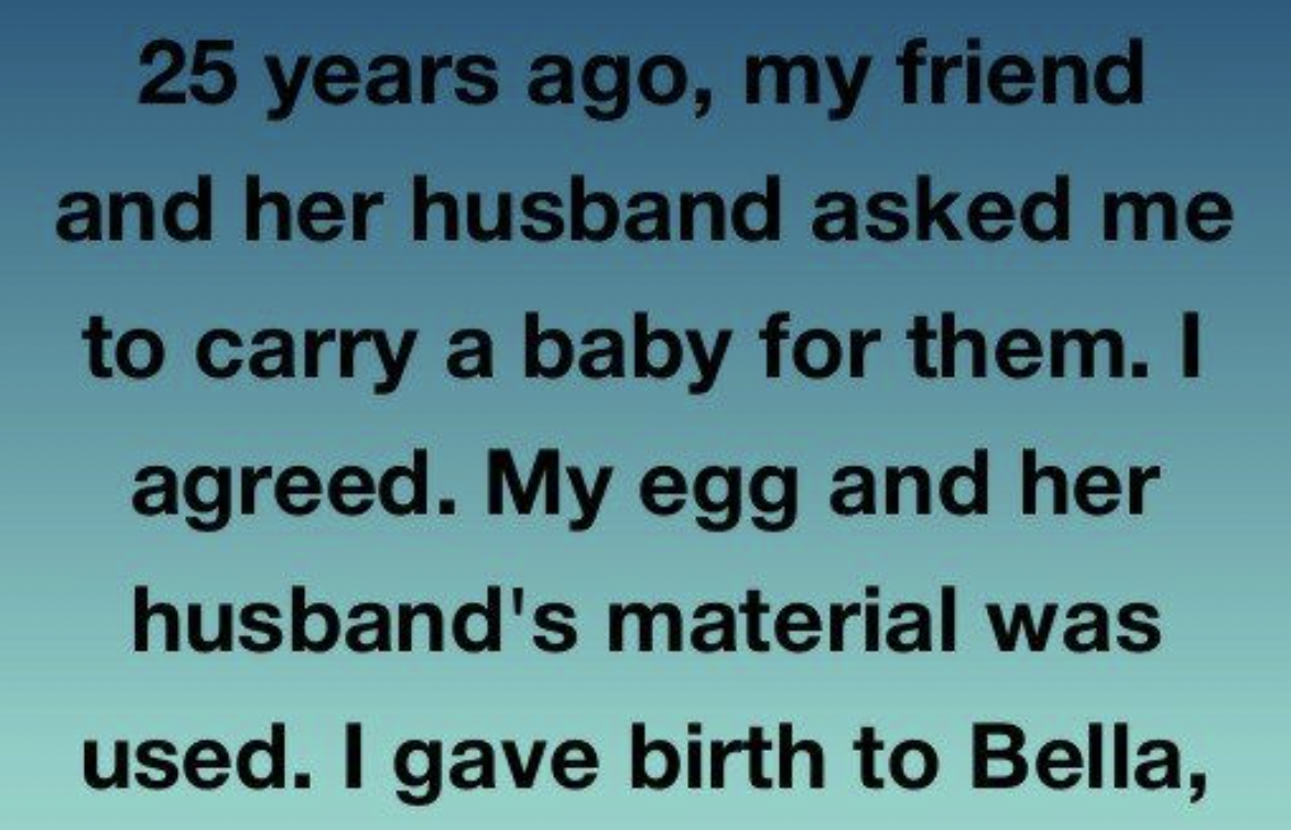 A quarter of a century ago, a cherished friend and her partner approached me with profound sincerity, asking for my help to expand their family by carrying a baby. I welcomed this chance enthusiastically. Utilizing my ovum and a biological contribution from her husband, I delivered their daughter, Bella, whom they adored and raised completely as their own. I willingly assumed the honored title of “Auntie,” a decision born from sincere affection and loyalty, motivated by a powerful commitment to fulfilling their lifelong wish for a child.