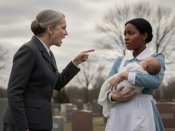 There, kneeling before William’s grave, was a young Black woman in a faded blue waitress’s uniform. Her apron was wrinkled. Her shoulders trembled. In her arms, wrapped in a soft white blanket, was a baby, perhaps a few months old.