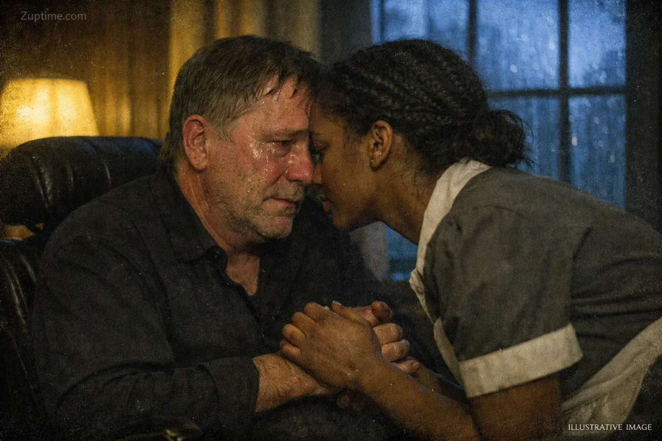Grace spoke little, but her quiet strength brought Arthur a peace that words could not. Each day, she served his tea with care, unaware that her kindness was awakening something within him — not desire, but gratitude and a deep, aching tenderness. One rainy night, as the sound of thunder echoed softly, Arthur broke down in tears. When Grace leaned close to comfort him, he whispered through trembling lips, “I need love. Don’t move.” In that moment, he was no longer a master, but a broken soul longing for warmth, while she held the fragile power to heal or to break him.
