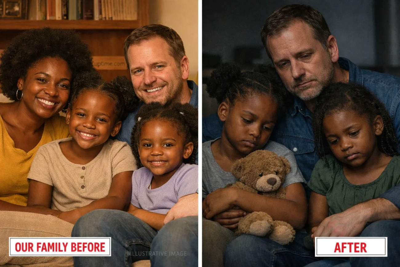 She glanced toward the couch. Emma and Lily, our six-year-old twins, were sitting side by side, still in their shoes.