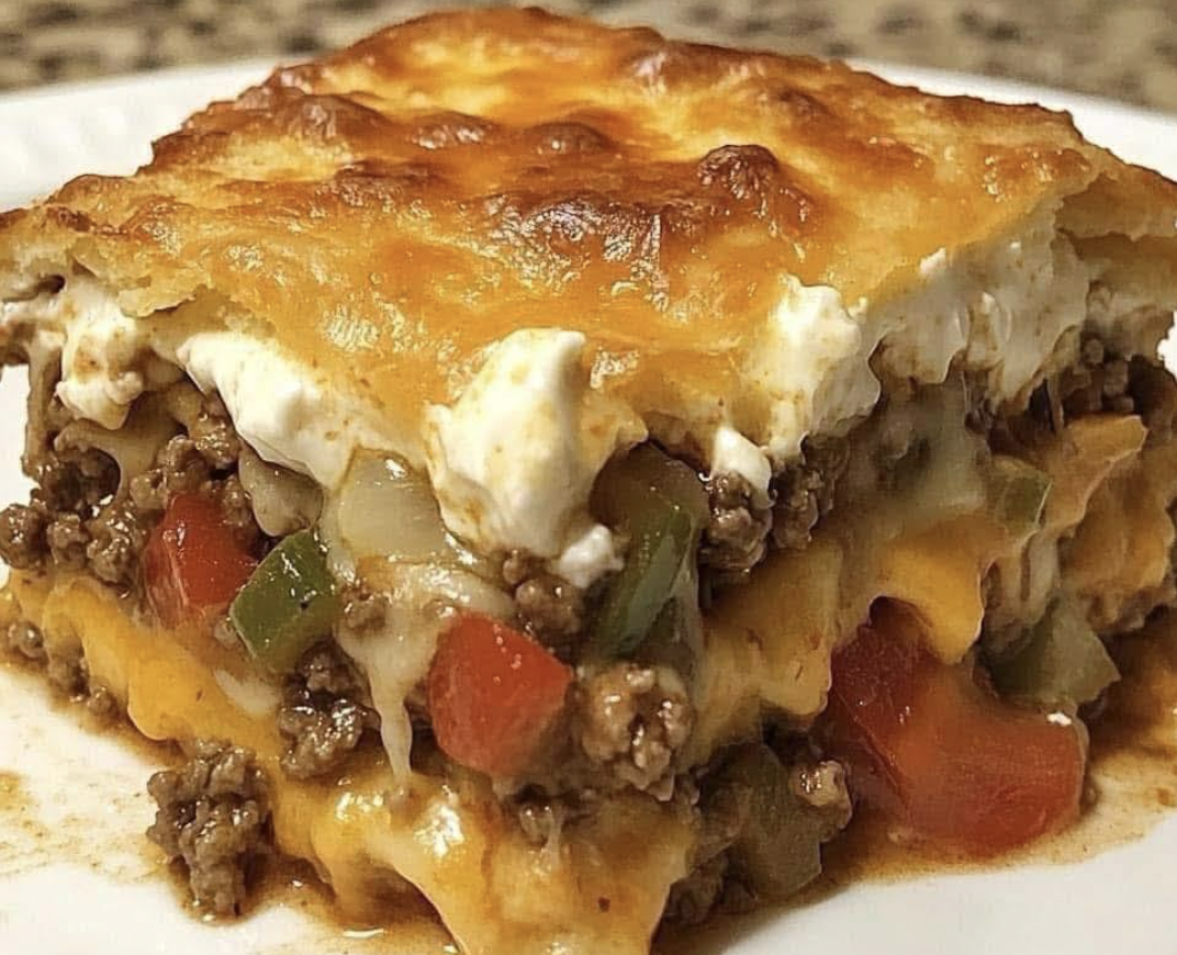 For those who grew up admiring John Wayne’s commanding presence on the big screen, this casserole is more than a meal. It evokes memories of a bygone era, offering comfort and a sense of togetherness. Loaded with seasoned ground beef, vibrant peppers, a rich cheese layer, and a golden biscuit foundation, it’s ideal for family gatherings, potlucks, or a cozy night in.
