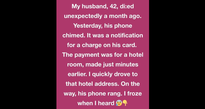 Yesterday, his phone vibrated with a new alert. A notification revealed a recent charge on his credit card for a hotel room, processed only minutes before. I hurried to the hotel’s address. As I drove, his phone rang, and the ringtone—identical to the one I’d set for my own contact—made me pause.
