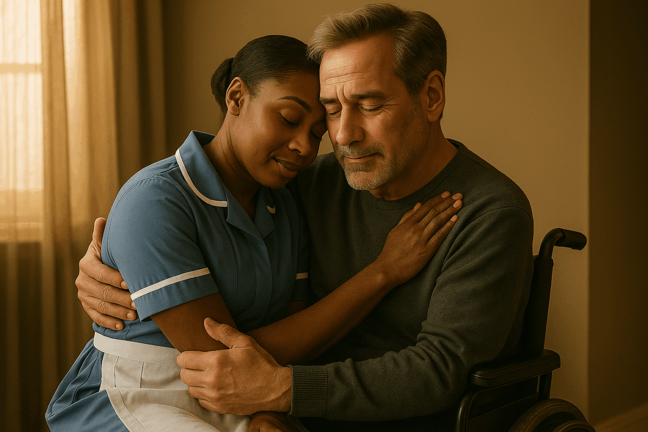 By morning, his wheelchair was empty. Grace buried him beneath a lone tree bathed daily in sunlight. She placed his letter beside him — their love sealed forever.
