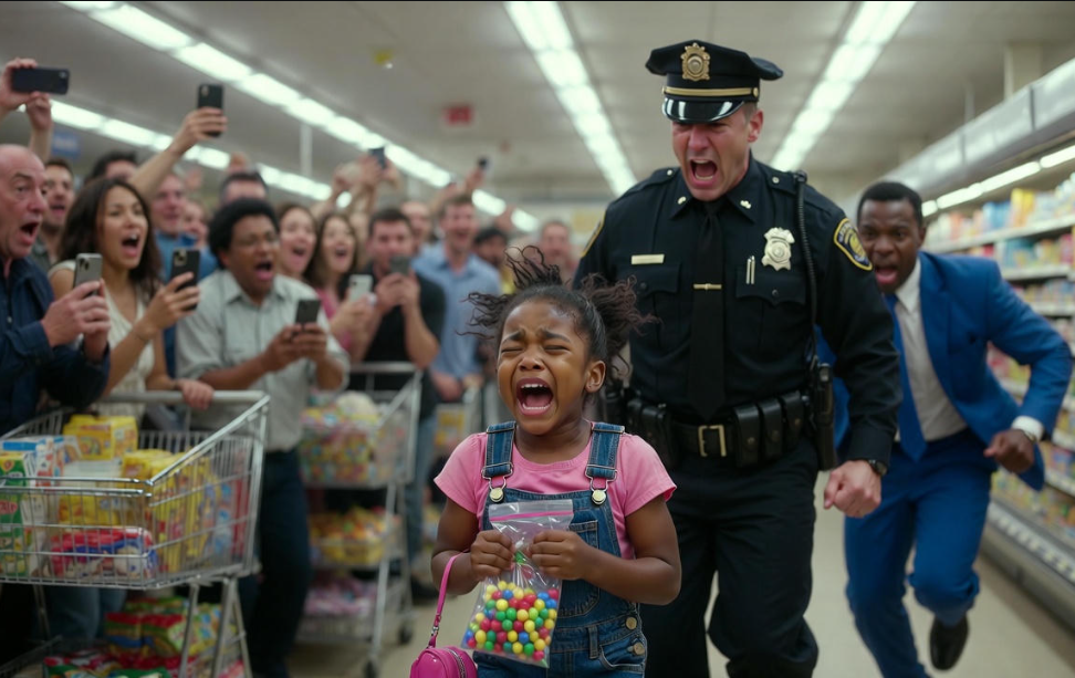 A police officer wrongly accused an eight-year-old Black girl of taking candy from a supermarket without paying. Five minutes later, her father, a prominent CEO, stepped inside the store and left the officer visibly shaken.