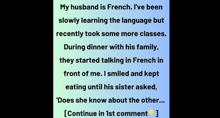 At a family dinner, his relatives began conversing in French around me. I smiled and continued with my meal until his sister, Maëlle, asked, “Elle sait pour l’autre…?”