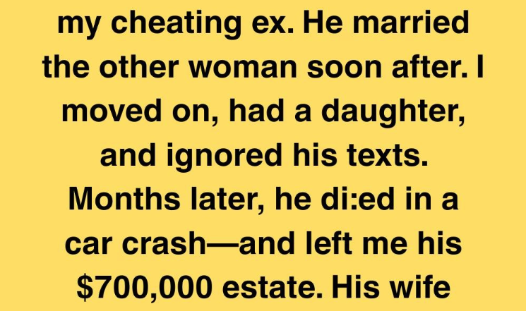 Following twenty years of building a life together, my relationship concluded because of Ziven’s infidelity. Without delay, he married Thalia, the individual he had selected to replace me. I dedicated myself to moving forward, brought a beautiful daughter into my world, and completely ignored his subsequent appeals for contact. Several months passed. A terrible disaster unfolded: Ziven died tragically in a vehicle collision, naming me as the sole beneficiary of his $700,000 estate.