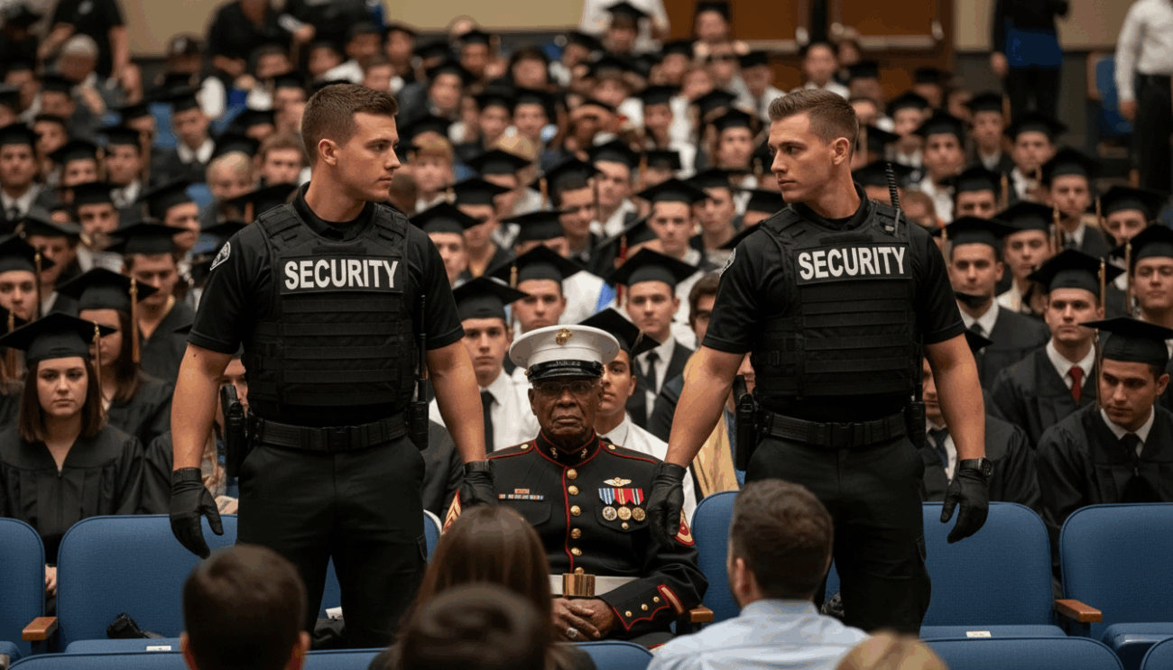 He had no wish to turn the ceremony into a confrontation. All he wanted was to watch his son walk across that stage. But the guards were not letting it go.